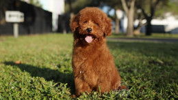 Meet Cosmo, a beautifully structured red Mini Poodle with an impressive dense coat, expressive eyes, and a bright, outgoing personality.