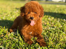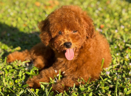 Cosmo comes from European and Chinese imported parents, known for producing compact, balanced red Poodles with true teddy-bear features, rich pigment, and ideal proportions. He is genetically clear (PRA, DM, VWD) and already well-socialized — exactly what people look for when seeking a family-friendly Poodle.