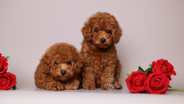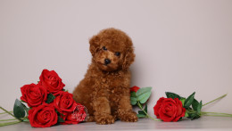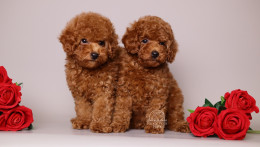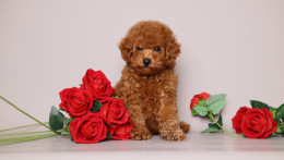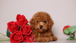 Stella is a stunning red Toy Poodle female with a compact, petite structure and an irresistibly sweet teddy-bear face. Her proportions, soft coat, and expressive eyes make her a truly charming and eye-catching puppy.